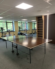 В тренажерном зале установлены тренажёры: беговая дорожка, велотренажер, степпер, гребной тренажер, виброплатформа, тренажер «сгибание - разгибание ног сидя», тренажер-универсал «жим», тренажер - спорт «боксер», тренажер комплексный, силовой тренажер, трехпозиционная станция с перекрестной тягой.